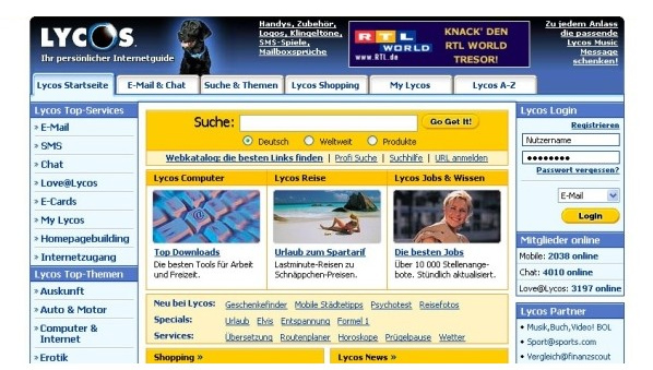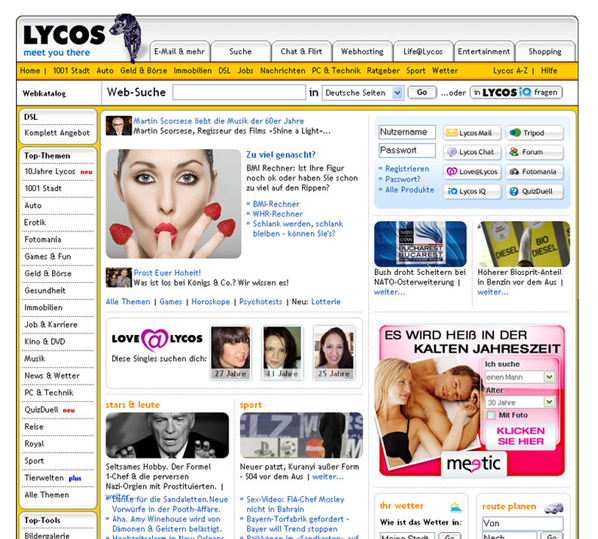 Leider existiert das Lycos-Europe Network so nicht mehr. Es gab eine Übernahme (nach langen Jahren hat Bertelsmann das Portal abgestossen) und das im Link gezeigte Design/Layout des Live-Service ist nicht mehr das was Sie hier sehen können.
